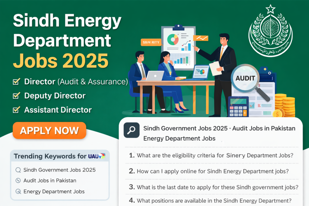 The Government of Sindh – Energy Department has announced new job vacancies for 2025 under the Institute of Auditors & Accounts (IAU). These positions are ideal for qualified finance, audit, and accounting professionals looking for government jobs in Sindh with career growth and stability.